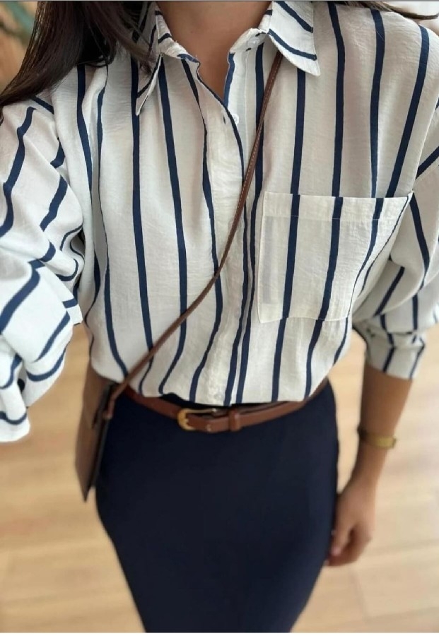 modal tiril gömlek BEYAZ LACİVERT CİZĞİLİ